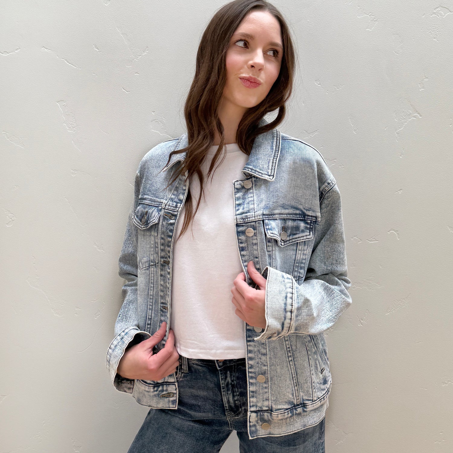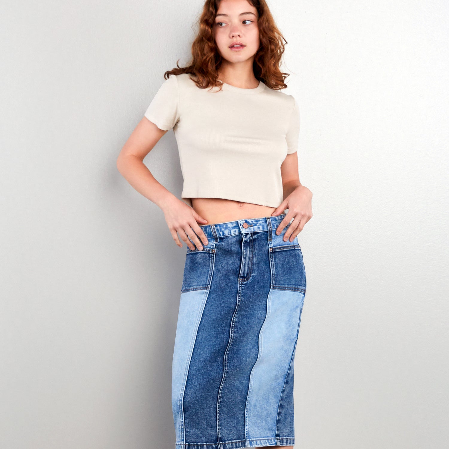 With its gorgeous wash, split front, and perfect midi length, the Denim Midi Skirt from Hint of Blu is your perfect Summer (or Spring, Fall and Winter) midi.