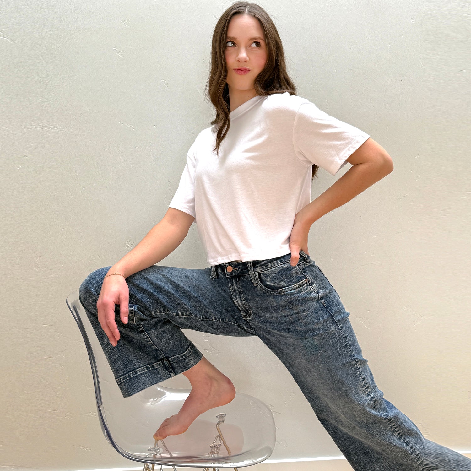 With its gorgeous wash, split front, and perfect midi length, the Denim Midi Skirt from Hint of Blu is your perfect Summer (or Spring, Fall and Winter) midi.